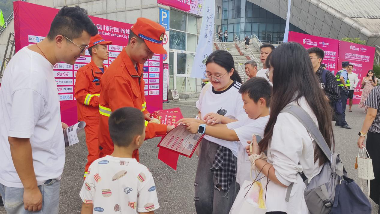 “您扫一扫二维码,就能看安全科普视频,还能抽奖领礼品!”2025年9月27日,在“川超”联赛雅安对阵乐山的赛场外,不少群众接过安全提示单,在工作人员的引导下,扫码参与由四川省安全生产委员会办公室组织开展的“庆双节·护平安——安全守护伴你行”主题宣传活动(以下简称 “庆双节·护平安”活动)。